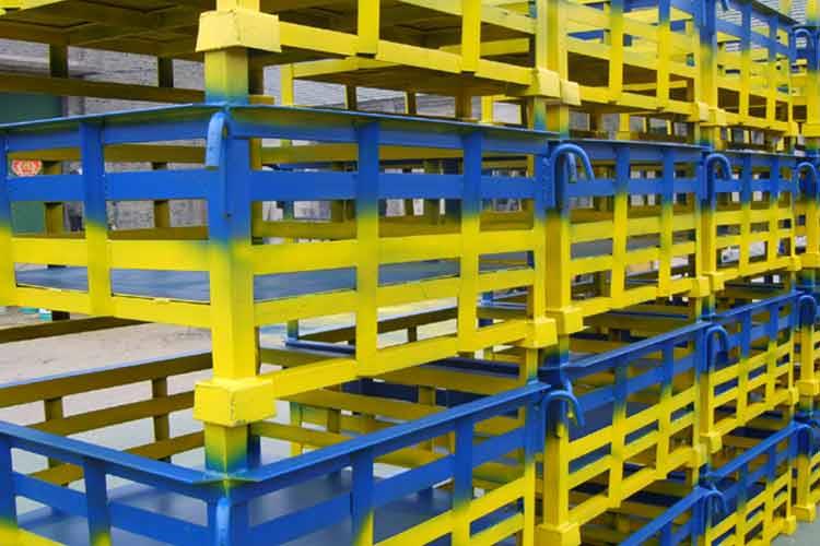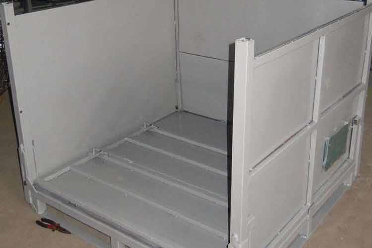 鐵制周轉箱采用折疊式結構,裝載、周轉、存放較為方便。空倉庫籠不使用時可折疊存放,承載能力大,堆疊平穩、牢靠、節省空間。鐵制周轉箱既可作立體的裝卸、存運、運輸工具,又可作物流倉儲籠使用,還可作售貨工具;鐵制周轉箱的使用能降低物流本錢,大大提高搬運效力。