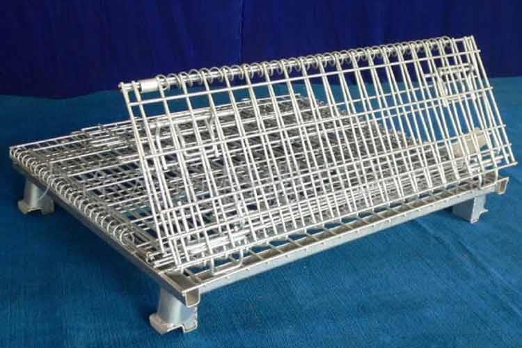可折疊蝴蝶籠的主要原材料是高線拉成的鋼絲,一般絲徑是5mm,6mm,6.4mm。網片焊接的網目間距一般為50×100,100×100,50×50。折疊式倉庫籠采用U型鋼焊接而成,U型鋼是冷軋帶鋼軋機軋制而成,底部四角采用沖壓件一次沖制而成。